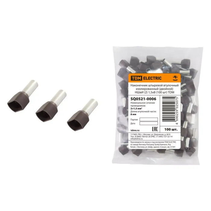 Материалы: Изоляция - ПВХ (поливинилхлорид) Наконечник-гильзы - латунь