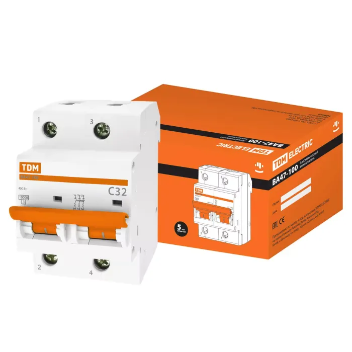 Авт. выкл. ВА47-100 2Р 32А 10кА х-ка С TDM