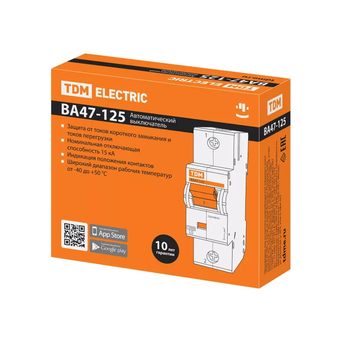 Авт. выкл. ВА47-125 1Р 50А 15кА х-ка С TDM