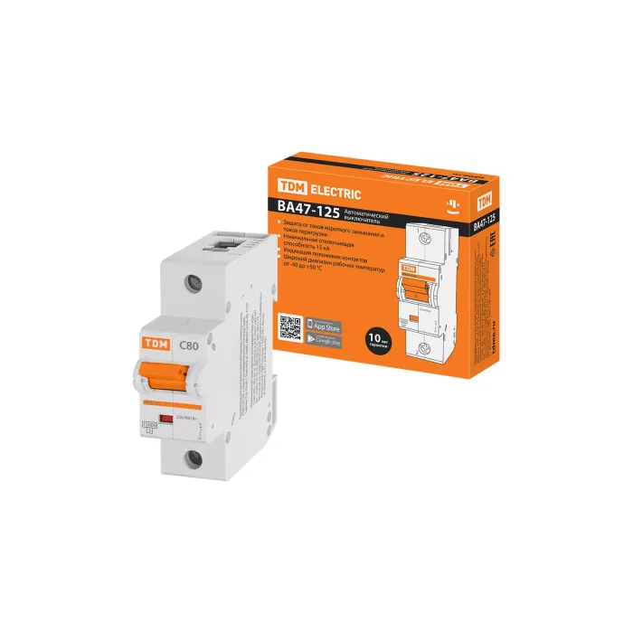 Авт. выкл. ВА47-125 1Р 80А 15кА х-ка С TDM