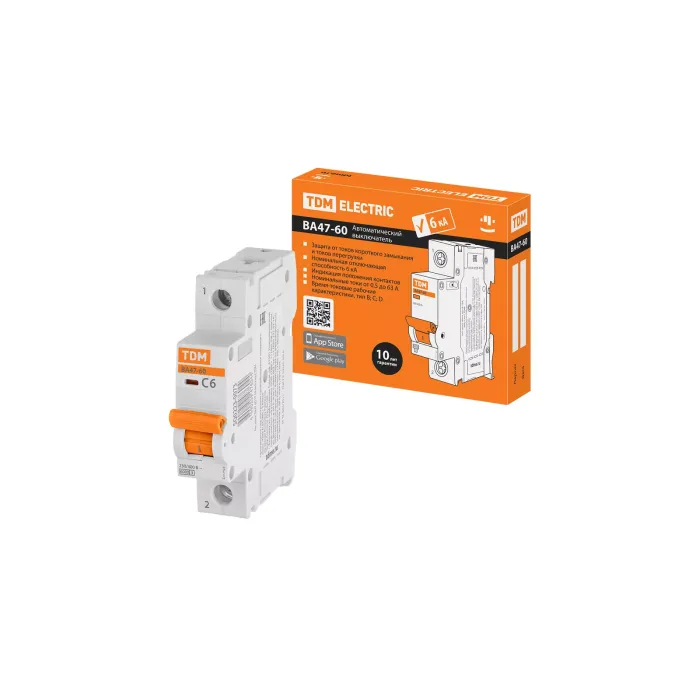Преимущества: Высокая отключающая способность – 6 000 А Высокий момент затяжки провода 3,5 Н*м, что значительно больше, чем момент затяжки 2 Н*м у всех 4,5 кА серий автоматических выключателей. Это позволяет надежно зажать провод, значительно снизить переходное сопротивление на клемме и тем самым уменьшить температуру выключателя, находящегося под нагрузкой. Высокое токоограничение, ток при коротком замыкании не достигает своей максимальной величины, тем самым меньше нагревается электропроводка в момент КЗ, при сравнении с выключателями с отключающей способностью 4,5 кА Возможность пломбирования для защиты от несанкционированного доступа (заглушка поставляется отдельно). На лицевой панели расположен механический индикатор положения контактов. Особенностью данного индикатора является то, что даже при удержании рукоятки в положении включено, если контакты расцеплены, например, при расцеплении от независимого расцепителя, индикатор покажет положение «расцеплено». Дополнительные аксессуары к серии ВА47-60: контакт положения, контакт состояния, независимый и минимально-максимальные расцепители Выключатели ВА47-60 имеют возможность подключать U-образную шину с обеих сторон. Что позволяет подключать питание и разводить U шиной не только сверху, как у серии ВА47-29, но и подключать питание и разводить U шиной снизу. Для монтажников это означает значительно облегчение монтажа.