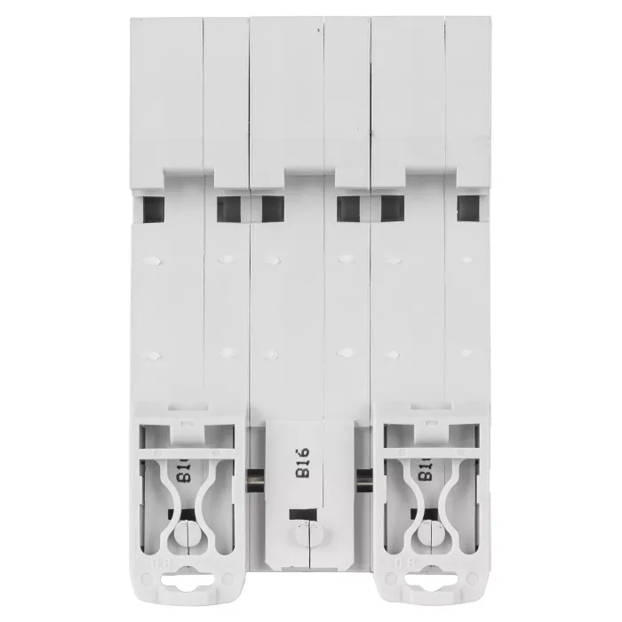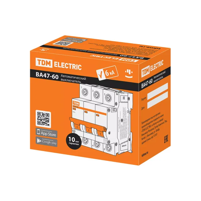 Преимущества: Возможность пломбирования для защиты от несанкционированного доступа (заглушка поставляется отдельно). Высокая отключающая способность – 6 000 А Высокий момент затяжки провода 3,5 Н*м, что значительно больше, чем момент затяжки 2 Н*м у всех 4,5 кА серий автоматических выключателей. Это позволяет надежно зажать провод, значительно снизить переходное сопротивление на клемме и тем самым уменьшить температуру выключателя, находящегося под нагрузкой. Высокое токоограничение, ток при коротком замыкании не достигает своей максимальной величины, тем самым меньше нагревается электропроводка в момент КЗ, при сравнении с выключателями с отключающей способностью 4,5 кА Дополнительные аксессуары к серии ВА47-60: контакт положения, контакт состояния, независимый и минимально-максимальные расцепители Выключатели ВА47-60 имеют возможность подключать U-образную шину с обеих сторон. Что позволяет подключать питание и разводить U шиной не только сверху, как у серии ВА47-29, но и подключать питание и разводить U шиной снизу. Для монтажников это означает значительно облегчение монтажа. На лицевой панели расположен механический индикатор положения контактов. Особенностью данного индикатора является то, что даже при удержании рукоятки в положении включено, если контакты расцеплены, например, при расцеплении от независимого расцепителя, индикатор покажет положение «расцеплено».