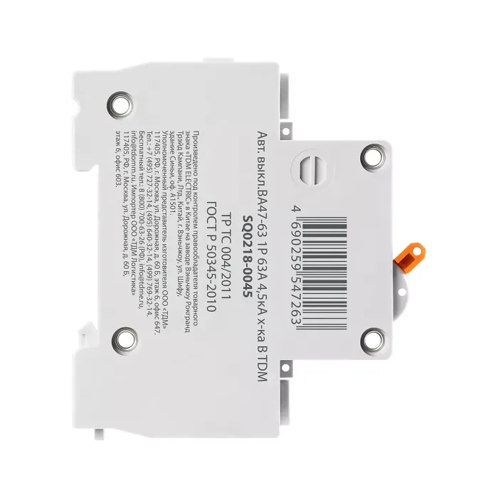 Авт. выкл.ВА47-63 1Р 63А 4,5кА х-ка B TDM