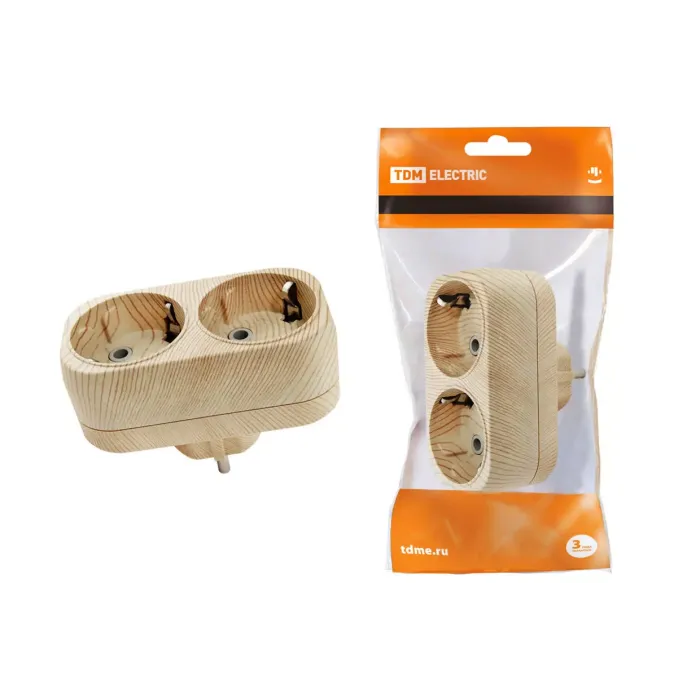 Блок на 2 гнезда 2П+З плоский 16А 250B "Эко" (сосна) TDM