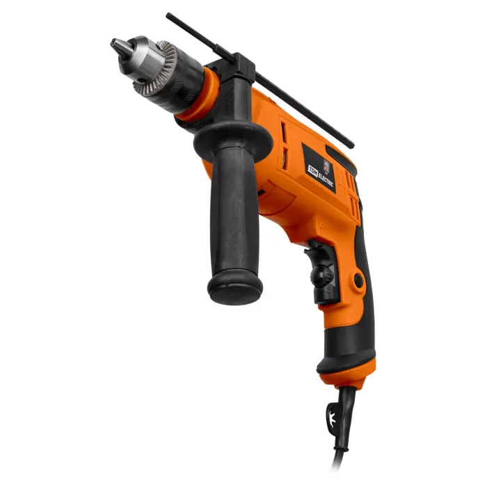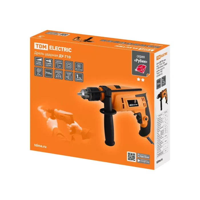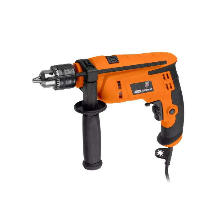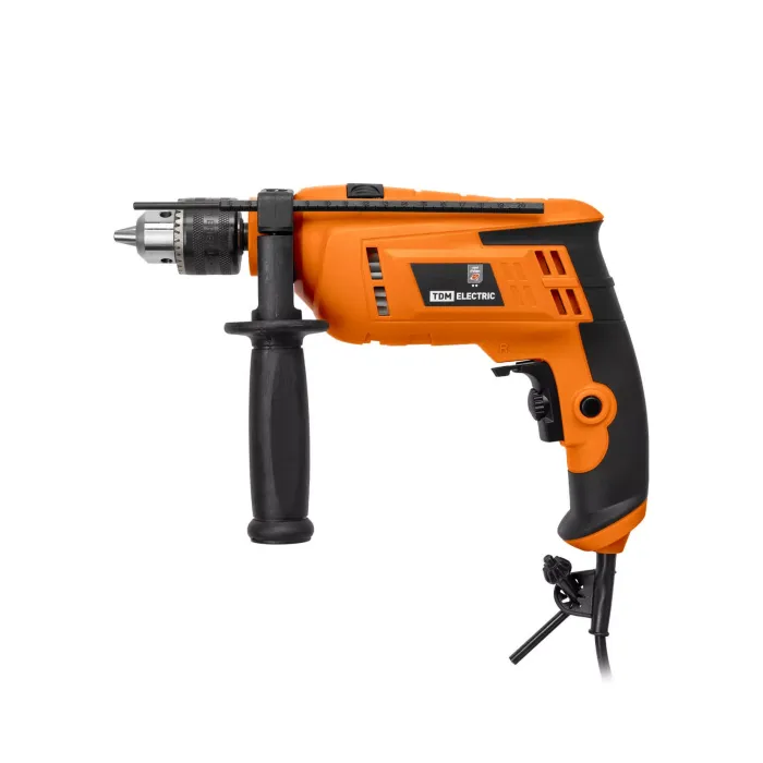 Преимущества: Компактные габаритные размеры. Длина сетевого шнура – 3 м. Функция сверления с ударом позволяет выполнять отверстия в кирпиче и бетоне. Реверс для изменения направления вращения. Надежный цельнометаллический патрон зубчато-венцевого типа. Надежный редуктор из твердой стали. Высококачественная конструкция на подшипниках позволяет снизить биение шпинделя. Плавная регулировка скорости вращения. Пластиковая рукоятка с резиновой накладкой удобно лежит в руке, не выскальзывает, практически не нагревается во время продолжительной работы.