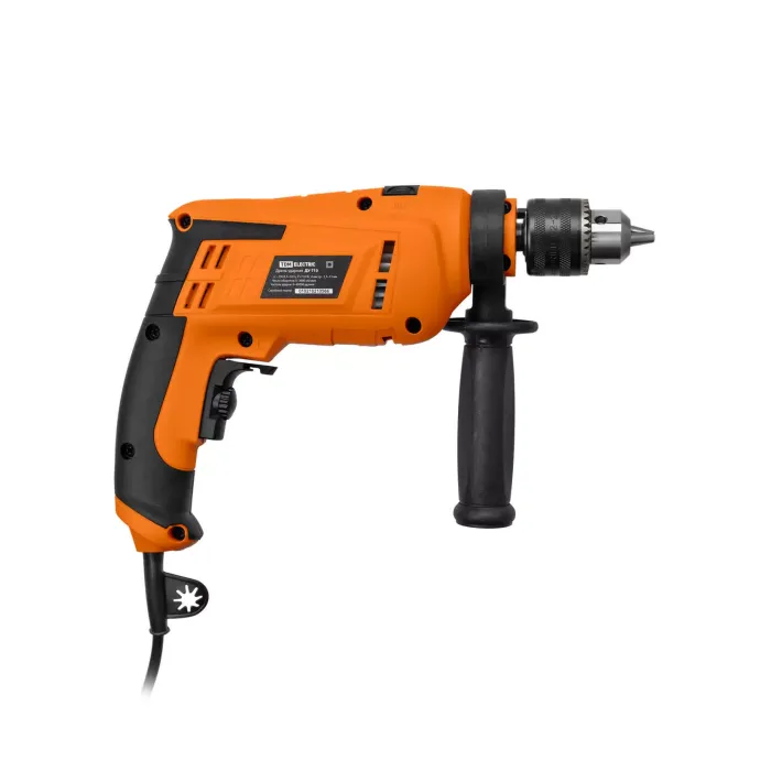 Комплектация: Ключ патрона - 1 шт. Руководство по эксплуатации. Паспорт. Дополнительная рукоятка - 1 шт Угольные щетки (запасной комплект) - 1шт Цветная картонная коробка со штрихкодом EAN-13, 1 шт Дрель ударная - 1 шт. Ограничитель глубины сверления - 1 шт.