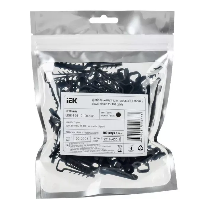 Дюбель-хомут 5х10мм для плоского кабеля нейлон черн. (уп.100шт) IEK UDH14-05-10-100-K02