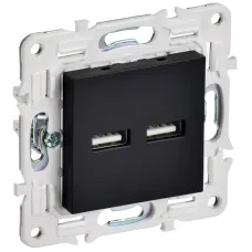Механизм Systeme Electric (ранее Schneider Electric) серии Glossa (цвет антрацит) розетки с двумя разъёмами USB с выходными напряжением 5 В постоянного тока и выходами с номинальным током по 2,1 А.