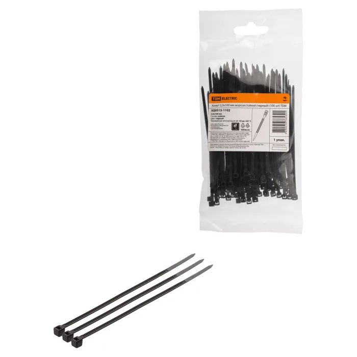 Хомут 2,5х100 мм морозостойкий (черный) (100 шт) TDM