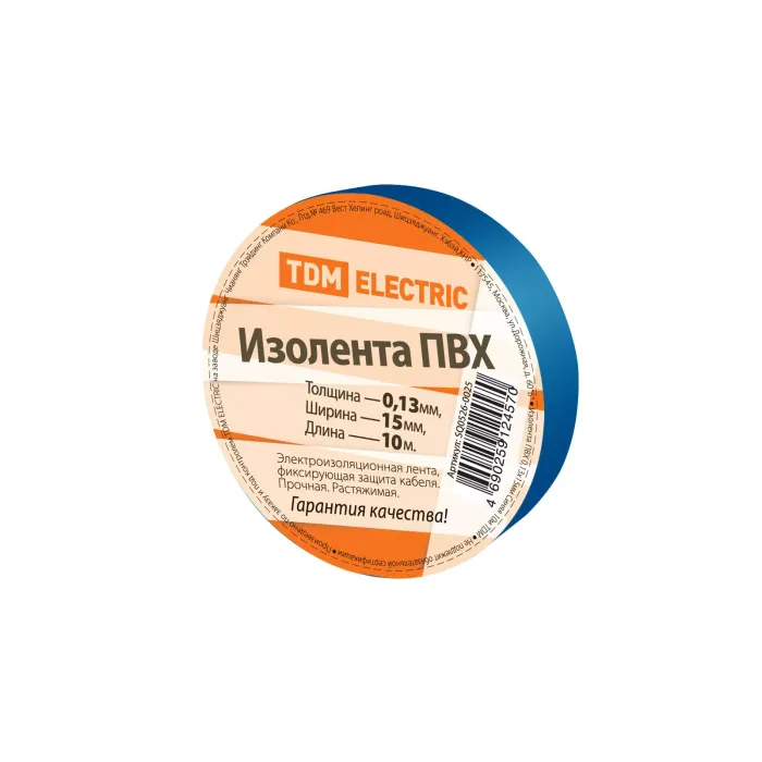 Изолента ПВХ 0,13*15мм Синяя 10м TDM