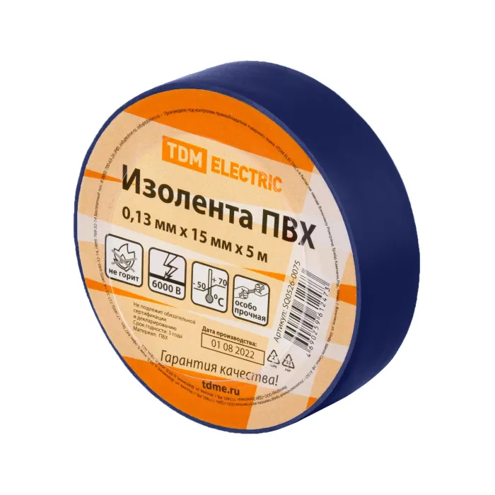 Изолента ПВХ 0,13х15мм Синяя 5м TDM