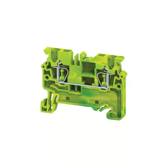 Заземляющая пружинная клемма на номинальное сечение проводника 2.5 кв. мм. Клеммы заземляющие с выводами безвинтового типа с пружинными зажимами с функцией PE предназначены для электрического и механического соединения медных проводников с DIN-рейкой в распределительных шкафах и щитах САУ. Клеммы позволяют легко присоединить круглые медные проводники, номинальным сечением от 0,2 до 16 кв.мм, обеспечивая надежный контакт и простоту сборки электрических схем.