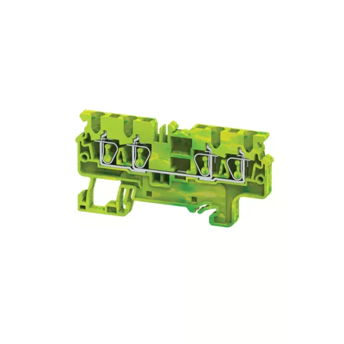 Заземляющая пружинная клемма на номинальное сечение проводника 2.5 кв. мм. Клеммы заземляющие с выводами безвинтового типа с пружинными зажимами с функцией PE предназначены для электрического и механического соединения медных проводников с DIN-рейкой в распределительных шкафах и щитах САУ. Клеммы позволяют легко присоединить круглые медные проводники, номинальным сечением от 0,2 до 16 кв.мм, обеспечивая надежный контакт и простоту сборки электрических схем.