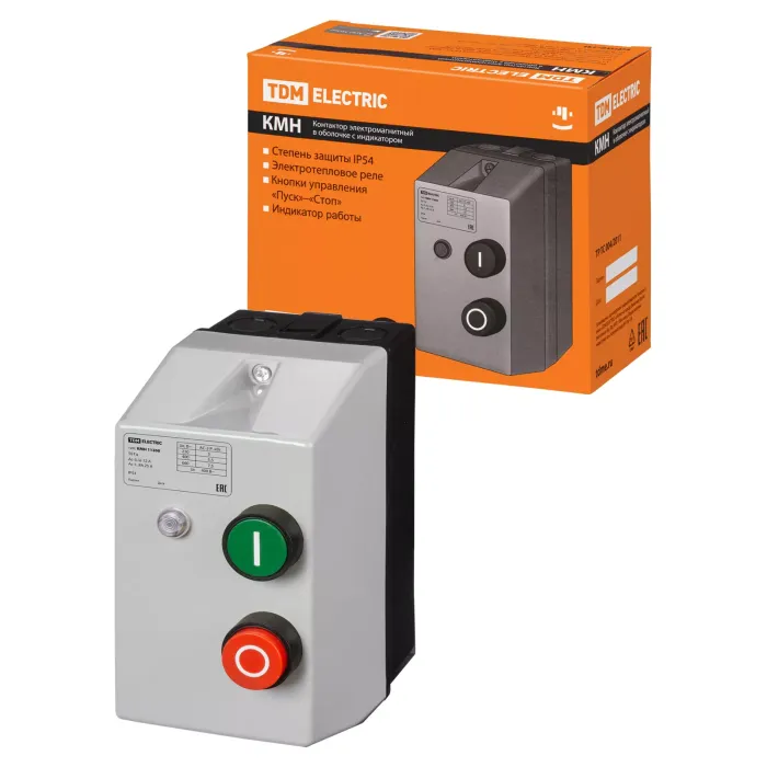 Применение: Контакторы КМН в сборе с электротепловым реле в защитной оболочке являются комплектным устройством. Контакторы КМН 10910 – КМН 23211 применяются в пластиковой оболочке, контакторы КМН 34012 – КМН 49512 – в металлической. Оболочка со степенью защиты IP54 позволяет использовать контактор на строительных площадках, в лакокрасочных, термических и гальванических цехах,