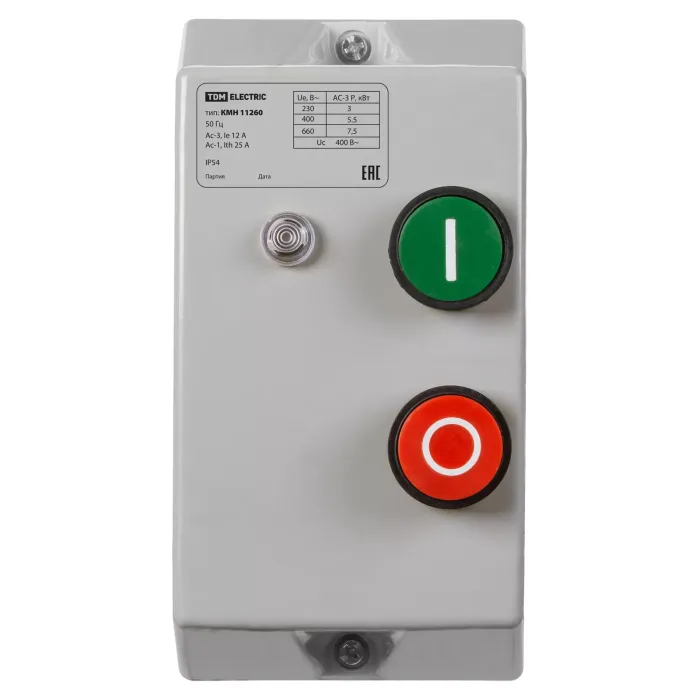 Назначение: Дистанционный пуск и остановка трехфазных асинхронных электродвигателей с короткозамкнутым ротором на напряжение переменного тока до 400 В. Защита электродвигателей от перегрузок недопустимой продолжительности и сверхтоков, возникающих при обрыве одной из фаз.