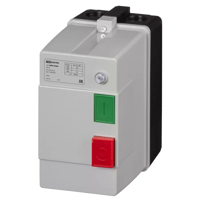 Назначение: Защита электродвигателей от перегрузок недопустимой продолжительности и сверхтоков, возникающих при обрыве одной из фаз. Дистанционный пуск и остановка трехфазных асинхронных электродвигателей с короткозамкнутым ротором на напряжение переменного тока до 400 В.