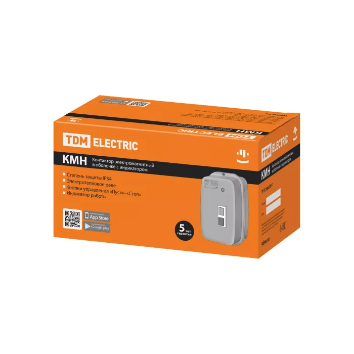 Назначение: Дистанционный пуск и остановка трехфазных асинхронных электродвигателей с короткозамкнутым ротором на напряжение переменного тока до 400 В.Защита электродвигателей от перегрузок недопустимой продолжительности и сверхтоков, возникающих при обрыве одной из фаз. Применение: Контакторы КМН в сборе с электротепловым реле в защитной оболочке являются комплектным устройством.Оболочка со степенью защиты IP54 позволяет использовать контактор на строительных площадках, в лакокрасочных, термических и гальванических цехах, Контакторы КМН 10910 – КМН 23211 применяются в пластиковой оболочке, контакторы КМН 34012 – КМН 49512 – в металлической. Конструкция: Заводская схема управления позволяет избежать ошибок при подключении на месте и сокращает время монтажа.При управлении активными нагрузками (нагревательные цепи, цепи освещения), рациональнее применять схему управления на 230 В.