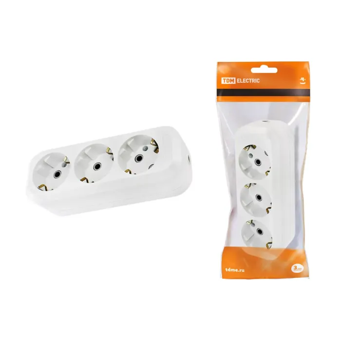 Колодка розеточная 3 гнезда 2П+3 16А 250В белая TDM
