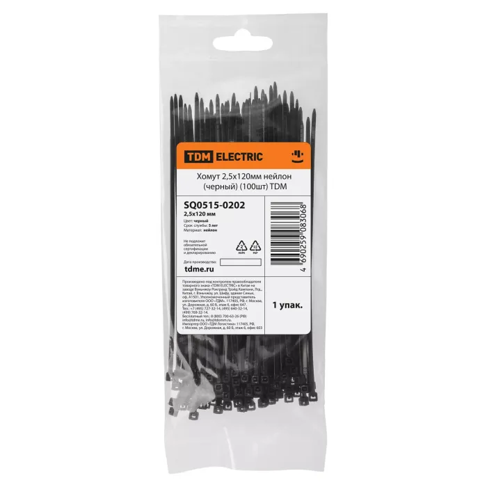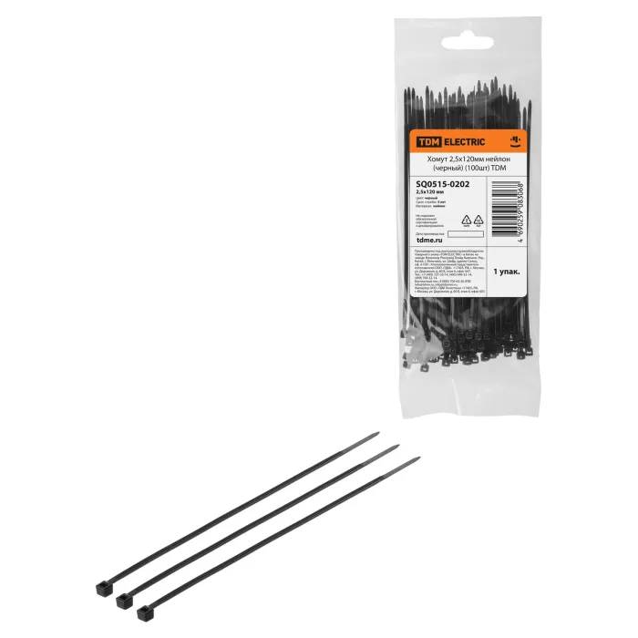 Хомут 2,5х120мм нейлон (черный) (100шт) TDM
