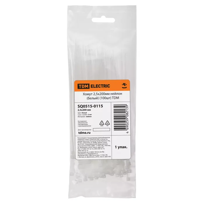 Хомут 2,5х200мм нейлон (белый) (100шт) TDM