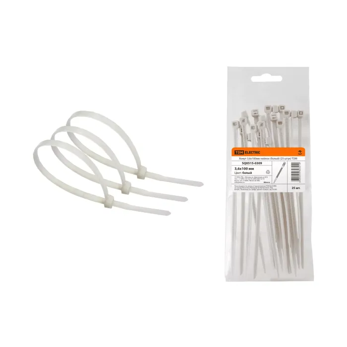 Хомут 3,6х100мм нейлон (белый) (25 штук) TDM