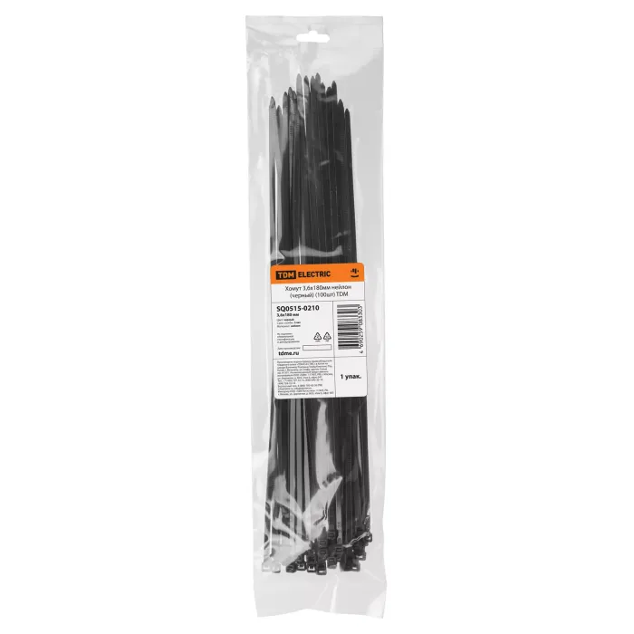 Хомут 3,6х180мм нейлон (черный) (100шт) TDM
