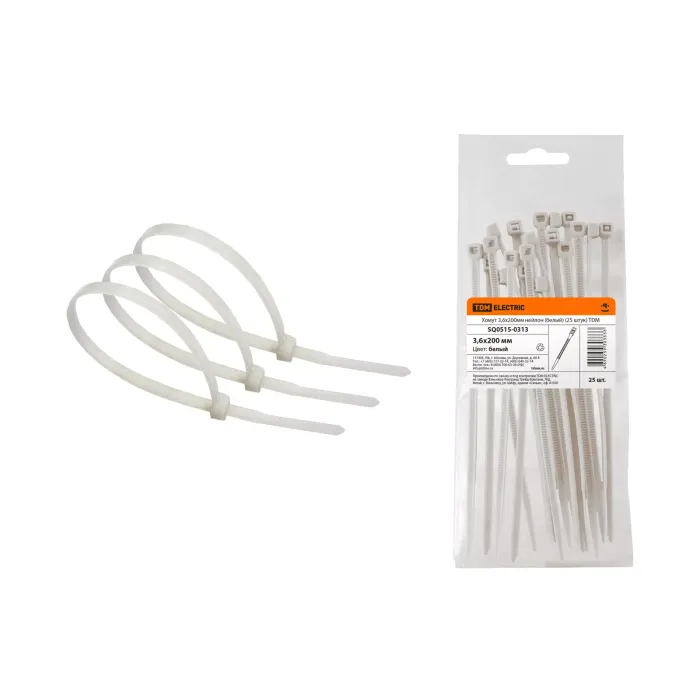 Хомут 3,6х200мм нейлон (белый) (25 штук) TDM