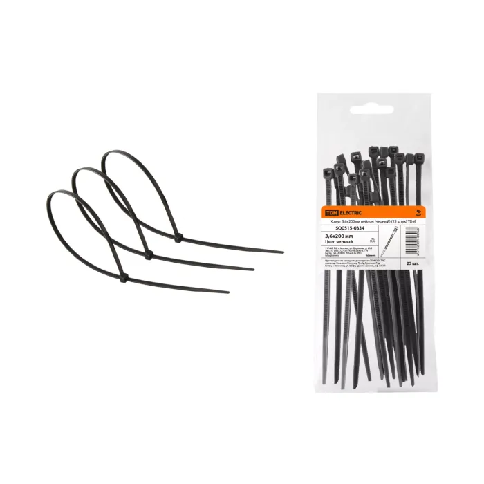 Хомут 3,6х200мм нейлон (черный) (25 штук) TDM