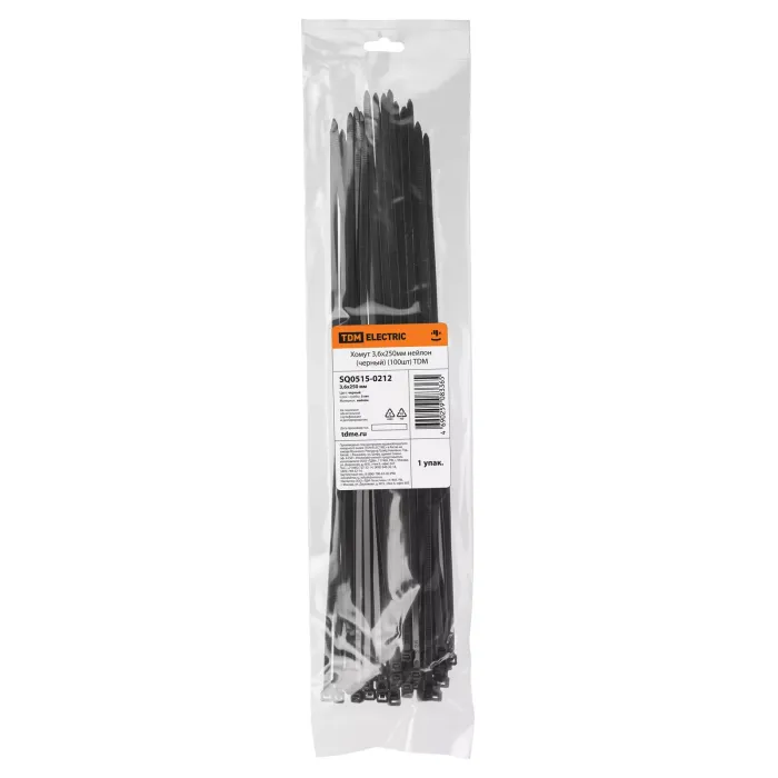 Хомут 3,6х250мм нейлон (черный) (100шт) TDM