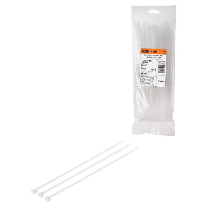 Хомут 7,6х300мм нейлон (белый) (50шт) TDM