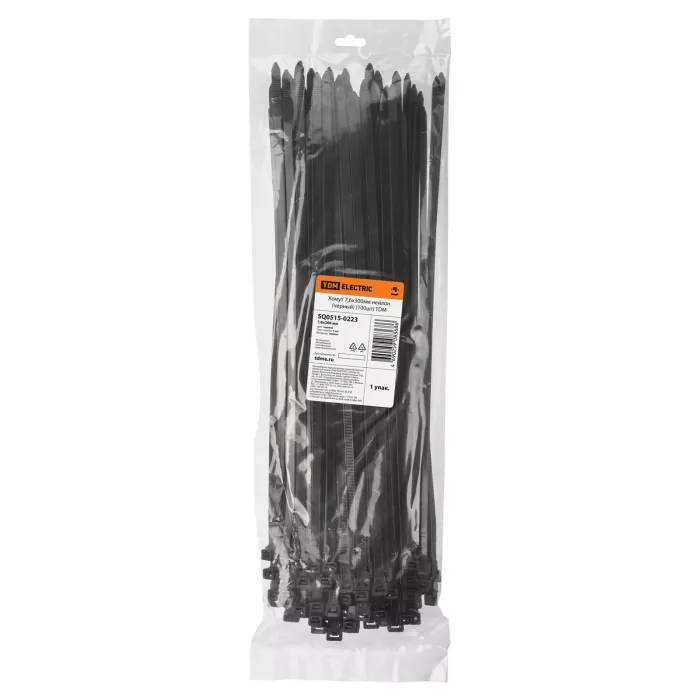 Хомут 7,6х300мм нейлон (черный) (100шт) TDM