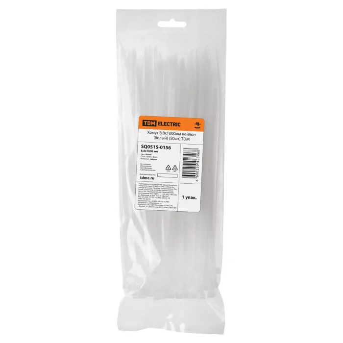 Хомут 8,8х1000мм нейлон (белый) (50шт) TDM