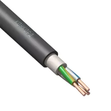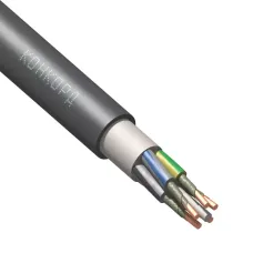 Представляет собой 5 медных жил сечением 10 кв.мм, в плотной малогорючей изоляции из ПВХ-материала, в оболочке из безгалогенового пластиката пониженной горючести. Изолирующий сл..