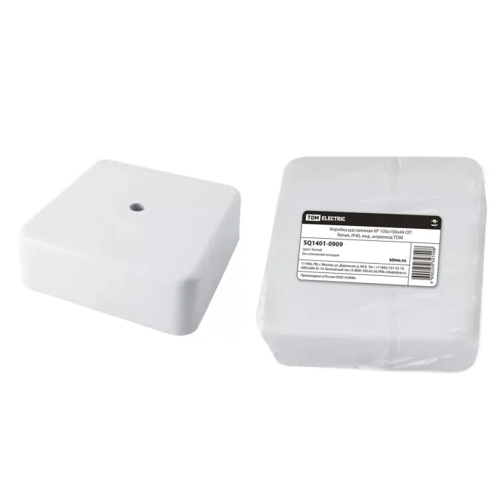 Коробка распаячная КР 100х100х44 ОП белая, IP40, инд. штрихкод TDM