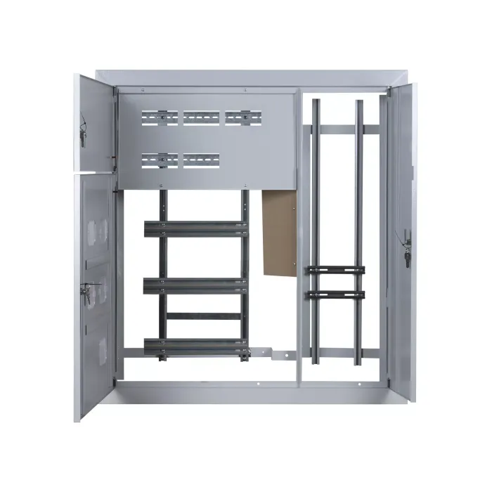 Конструкция: Цельносварная конструкция с усиленными ребрами жесткости. Щит поставляется в собранном виде, имеет монтажную раму с установленными на ней монтажными планками. Элемент заземления на дверце. Надежные петли.