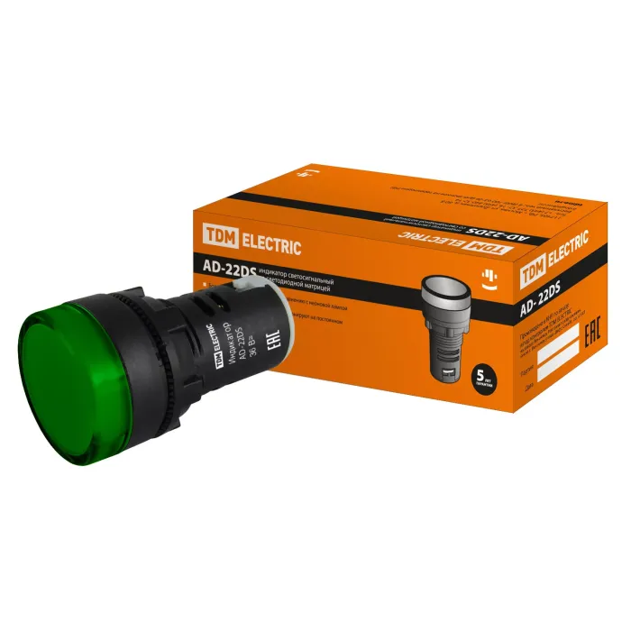 Лампа AD-22DS(LED)матрица d22мм зеленый 36В AC/DC TDM