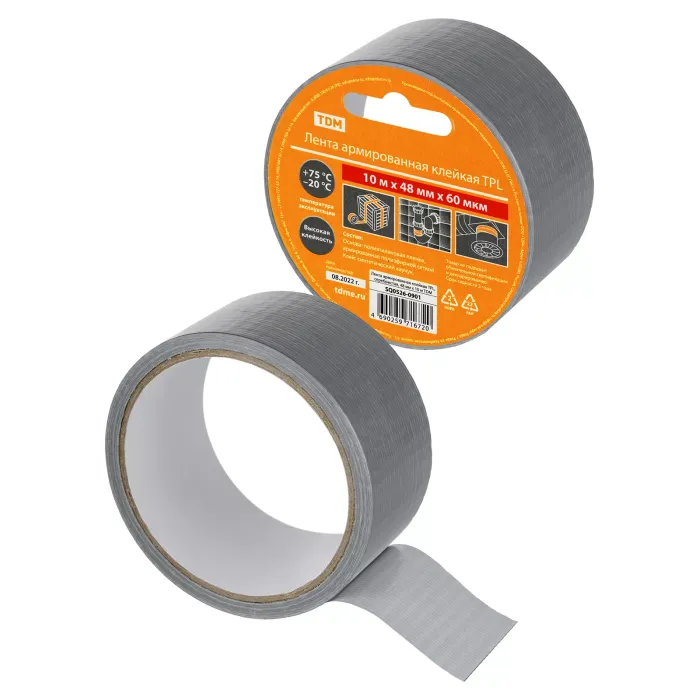 Лента армированная клейкая TPL, серебристая, 48 мм х 10 м TDM