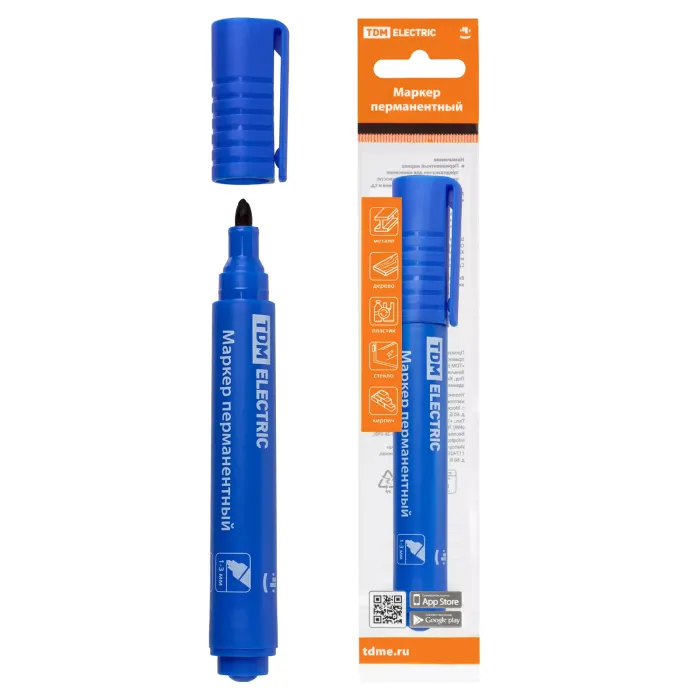 Маркер перманентный 1-3 мм, синий (пакет) круглый наконечник TDM