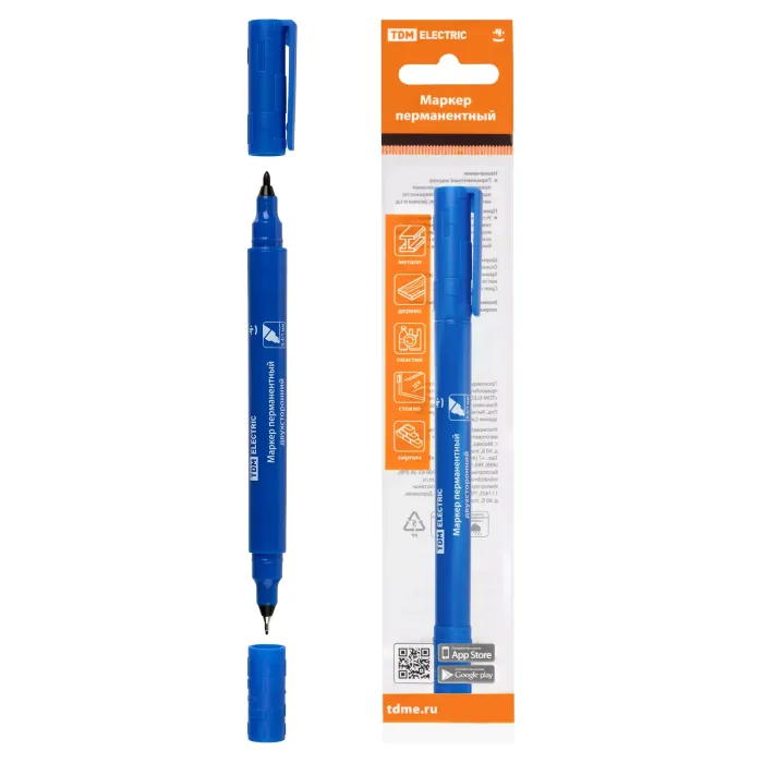 Маркер перманентный двухсторонний 0,4/1 мм, синий (пакет) круглый наконечник TDM