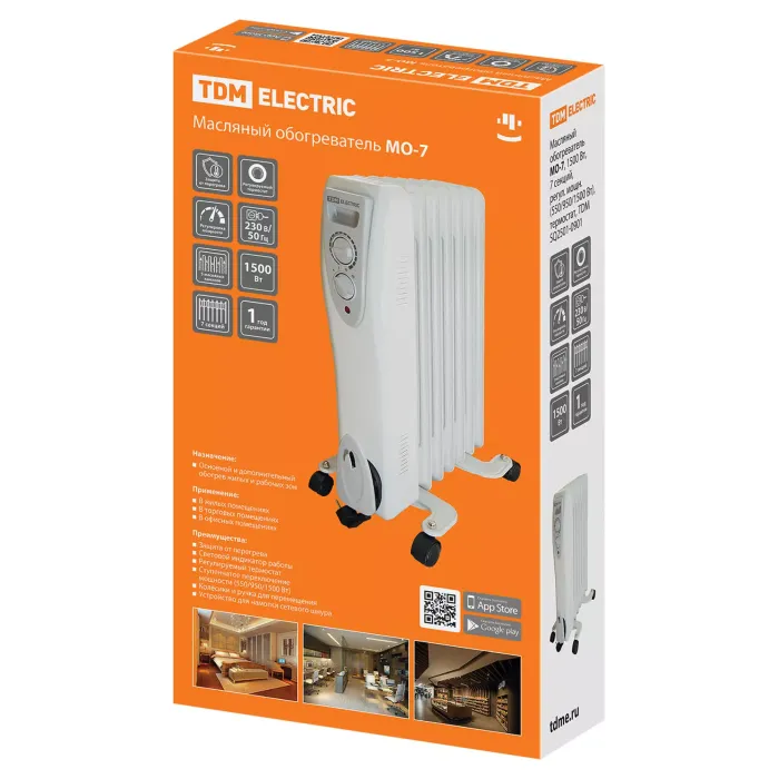 Назначение: Основной и дополнительный обогрев жилых и рабочих зонПрименение: Применяются для основного и дополнительного обогрева жилых, производственных, торговых и офисных помещенийПреимущества: Ступенчатое переключение мощностиРегулируемый термостатПоддержание заданной температурыАвтоматическое отключение в случае перегреваУстройство для намотки сетевого шнураНагревательная секция с пятью масляными каналамиСветовой индикатор работы.Колёса и ручка для удобного перемещения