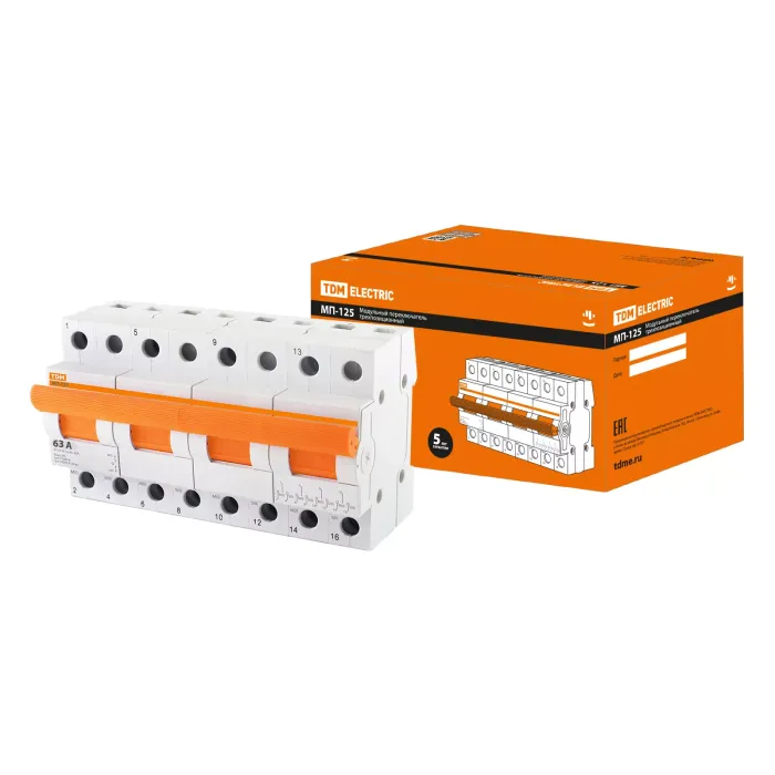 Преимущества: Максимальный размер присоединяемого проводника круглого сечения 50 мм² (у МП-63 этот показатель 16 мм²), максимальный размер присоединяемого проводника квадратного сечения 9*9 мм Схема устройства позволяет заменять реверсивные рубильники в применении для ручного ввода резерва. Максимальный номинальный ток переключателя увеличен с 63 А до 125 А. Момент затяжки винтов увеличен до 3,5 Н*м (по сравнению с 2 Н*м у МП-63), что значительно улучшает тепловые нагрузки, и является более надежным и долговечным при подключении проводника к клемме.