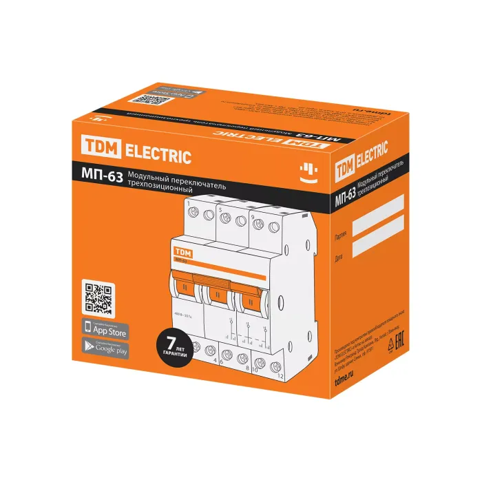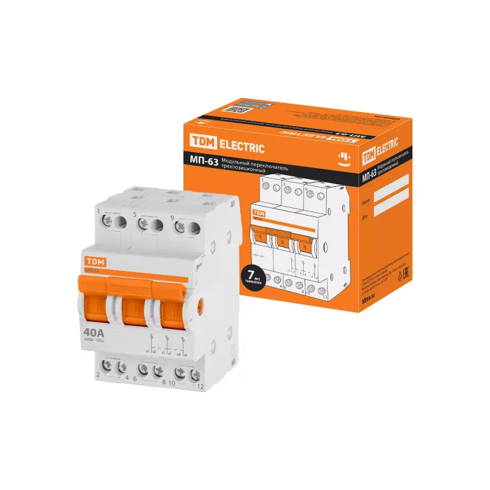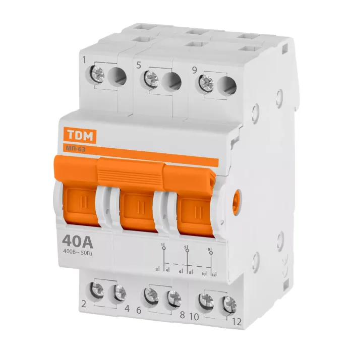 Назначение: Оперативное включение и выключение электрических цепейПроведение тока в нормальном режиме.Переключение электрических цепей.Применение: Вводно-распределительные устройства для жилых и общественных зданий.Преимущества: Компактные размеры шириной в один модуль 18 мм.Подвод питающей линии и нагрузки может производиться как через верхние, так и через нижние контакты МП-63, без нарушения работоспособности.Эргономичная рукоятка управления, исключающая соскальзывание пальцев.Материалы: Корпус и детали аппарата выполнены из пластика, не поддерживающего горение.Упаковка: МП-63 1Р по 12 шт.МП-63 2Р по 6 шт.МП-63 3Р по 4 шт.МП-63 4Р по 3 шт.Руководство по эксплуатации - 1 шт. на групповую упаковку Паспорт - 1 шт. на групповую упаковку