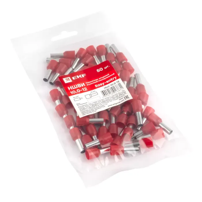 Наконечник штыревой втулочный изол. НШвИ 10.0-12 (уп.50шт) EKF nhvi-10.0-12