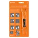 Назначение: Для тестирования напряжения в цепях переменного и постоянного тока, целостности цепи, полярности элементов питания.Преимущества: Определение переменного напряжения в том числе в скрытой проводке.Определение места обрыва кабеляОпределение полярности батареи или аккумулятора.Определение фазного и нулевого проводника.Определение целостности цепиМатериалы: Изолирующий ПВХВысококачественная инструментальная сталь