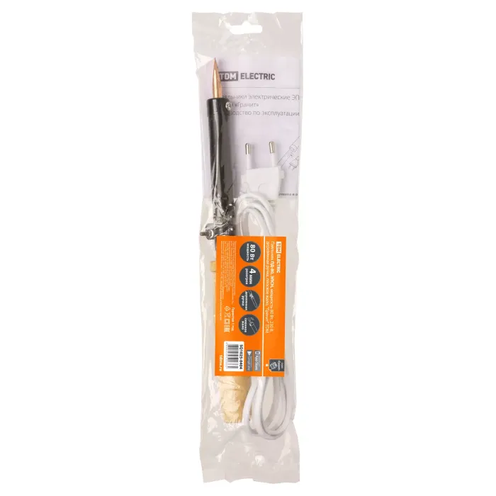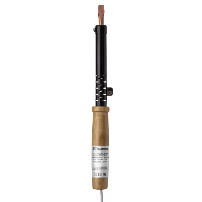 Паяльник ПД-80, ЭПСН, мощность 80 Вт, 230 В, деревянная ручка, плоское жало, "Гранит" TDM