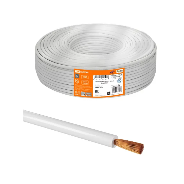 Провод ПуГВ 1х4,0 ГОСТ (100м), белый TDM