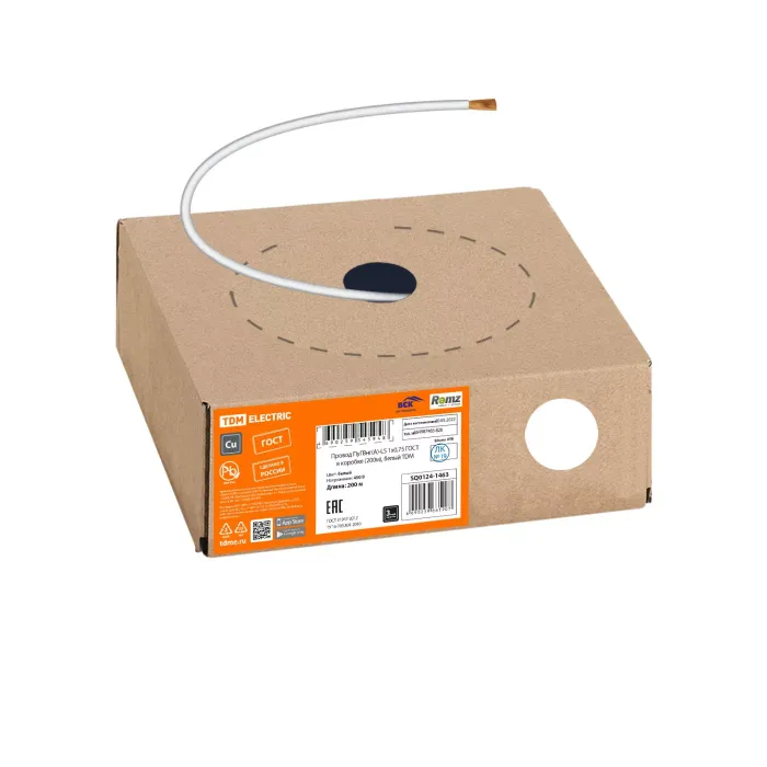 Провод ПуГВнг(А)-LS 1х0,75 ГОСТ в коробке (200м), белый TDM