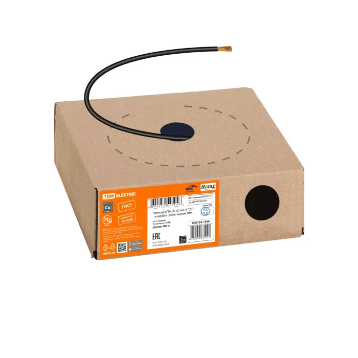 Провод ПуГВнг(А)-LS 1х0,75 ГОСТ в коробке (200м), черный TDM
