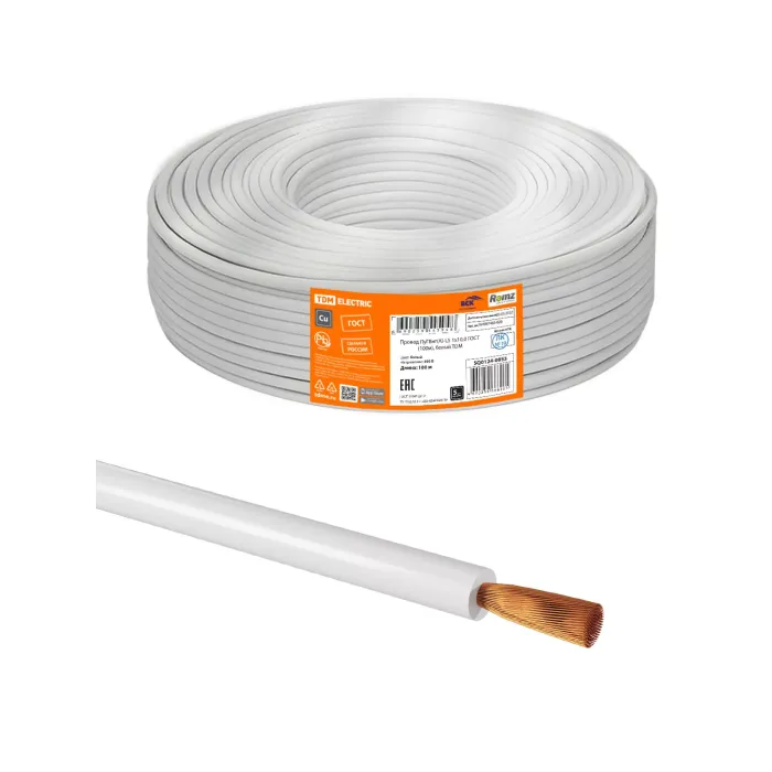 Провод ПуГВнг(А)-LS 1х10,0 ГОСТ (100м), белый TDM