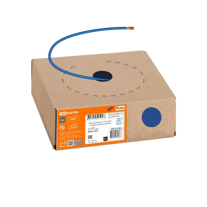Провод ПуГВнг(А)-LS 1х2,5 ГОСТ в коробке (100м), синий TDM